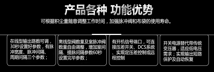 是脈沖袋式除塵器噴吹清灰的主要控制裝置。它的輸出信號控制電磁脈沖閥,進而控制壓縮空去對濾袋循序噴吹清灰,使除塵器的運行阻力保持在設(shè)定范圍之內(nèi),以_除塵器的處理能力和收塵效率。